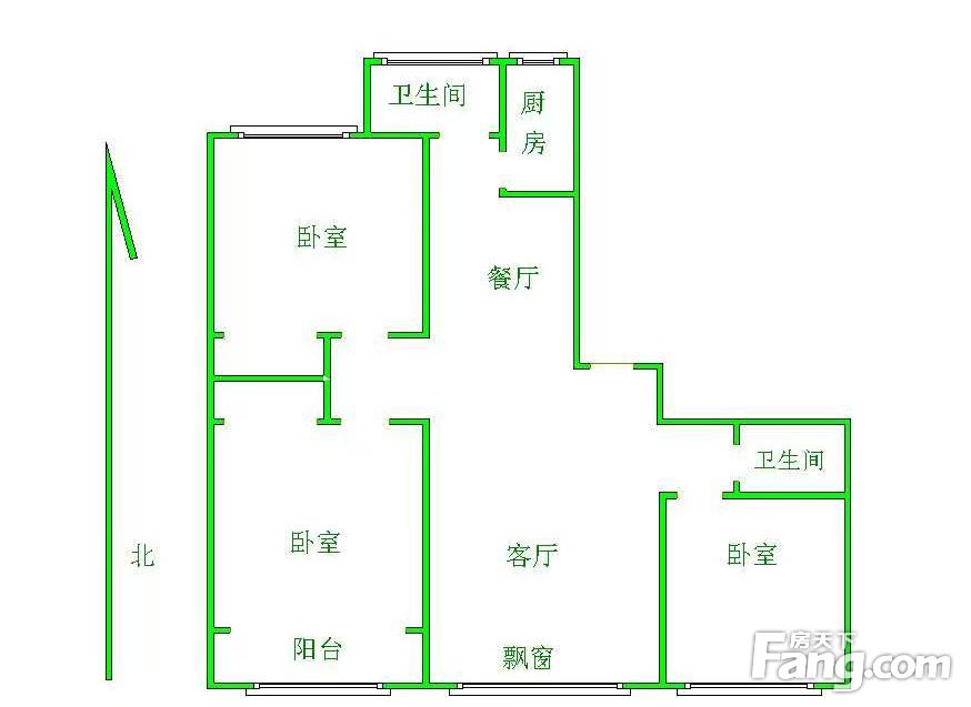 本房源户型图与照片和一致,南北通透,实用小三室